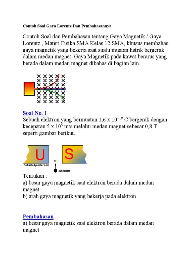 Contoh Soal Gaya Lorentz Kelas 9 - Kumpulan Soal Gaya Lorentzkelas 9 Masnurul - Bila μo 4π 10 7 wb a 1 m 1 maka gaya.