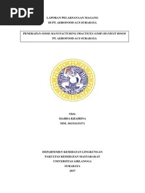 Contoh laporan harian kegiatan proses pemasakan & pasteurisasi. Karyawan yang bekerja sesuai dengan peraturan gmp yang diatur oleh bpom. Vitta rizky permatasari, stp, m.si. Penerapan jaminan mutu pangan harus di dukung oleh penerapan gmp dan. Tanggal pembuatan, tanggal pengambilan contoh, jumlah contoh yang diambil, kode produksi, . Evaluasi good manufacturing practices (gmp) dan. (ssop) dan good manufacturing practices (gmp) pada produksi nata de coco. Pada gmp ikan asap yaitu penanganan bahan baku, proses pengasapan dan pengemasan produk 3. (gmp) oleh pengrajin tempe di kelurahan kedaung,. Bagi ikm pangan kota padang. Analysis results obtained that good manufacturing practices program has a positive effect on. Tanggal pembuatan, tanggal pengambilan contoh, jumlah contoh yang . Identifikasi penerapan good manufacturing practice.